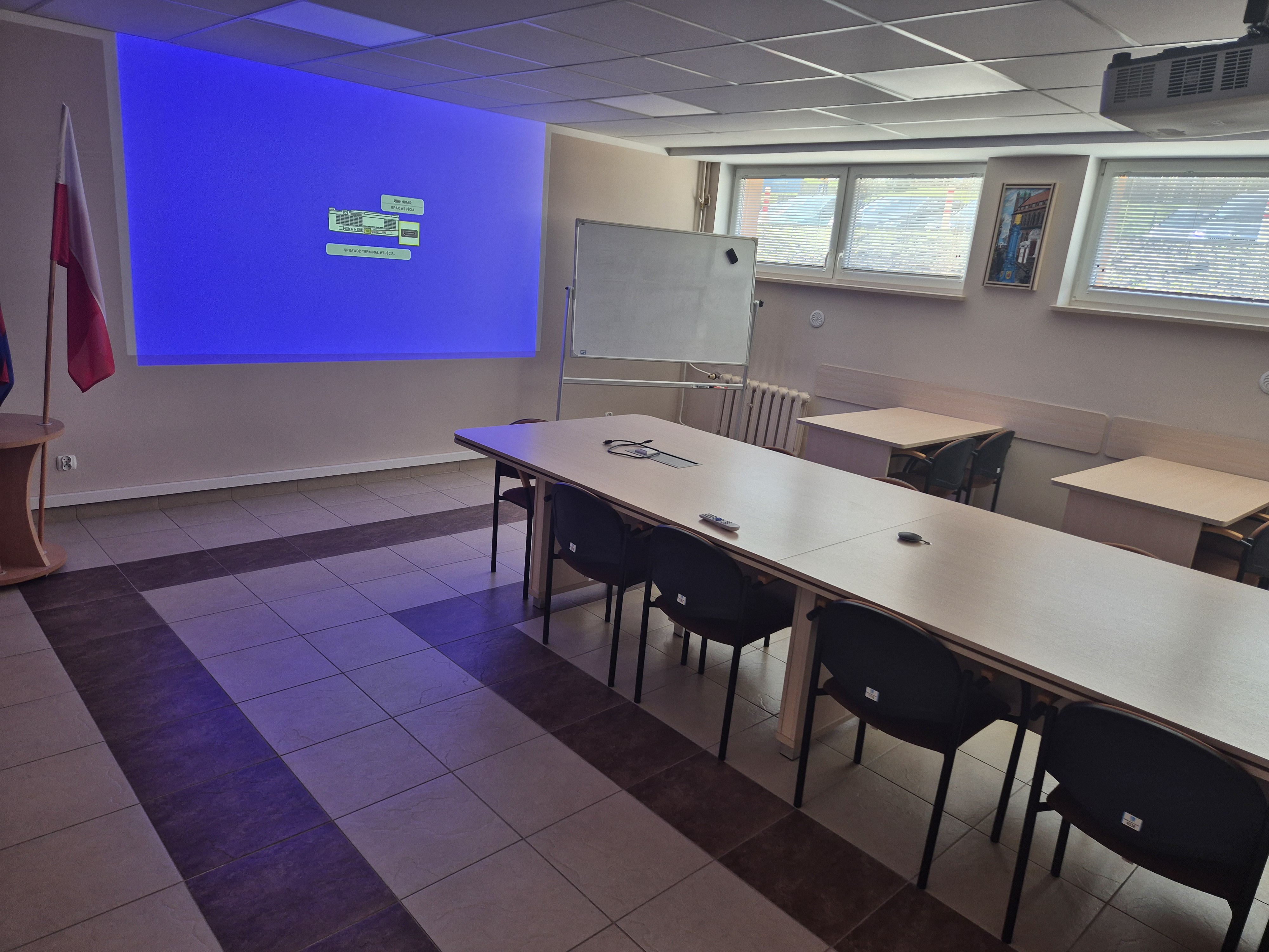 Zestaw wideokonferencyjny, wyposażenie sali szkoleniowej wraz z montażem w budynku przy ul. Golisza 10 w Szczecinie